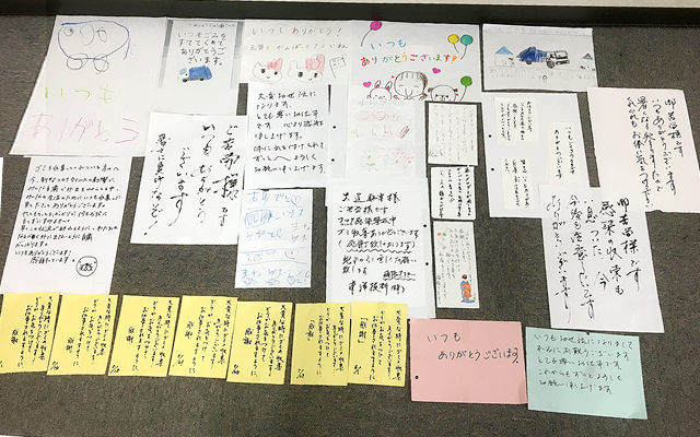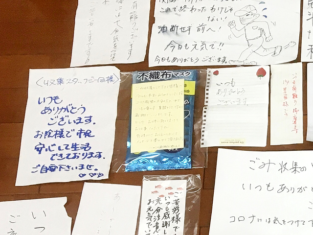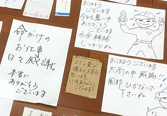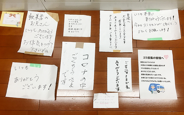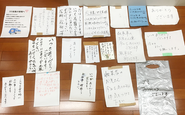ゴミ収集業務中に、このような心温まるメッセージを多数いただきましたので、ご紹介させていただきます。