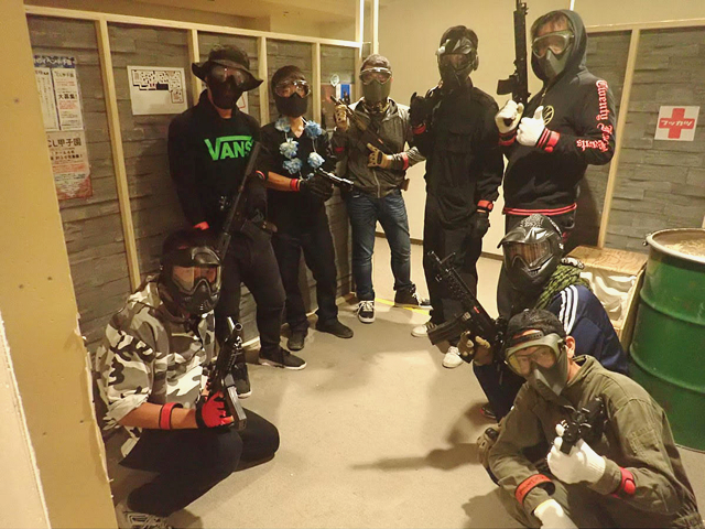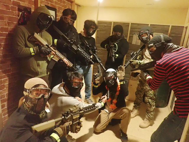 エアソフトガンやゴーグル、プロテクターを装備して、戦闘モード!