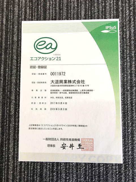 「エコアクション21」とは、中小企業がおこなう環境にやさしい経営の取り組みに対して審査し、認証を与える制度です。