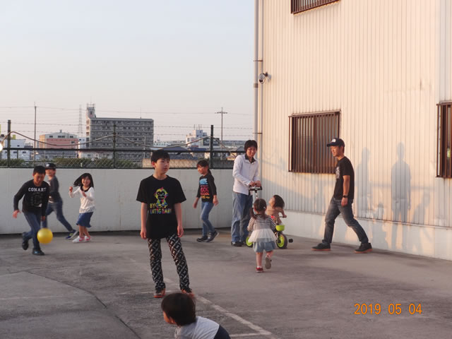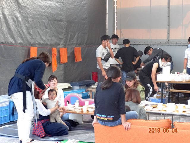男性スタッフが準備をしている間、子供たちは遊んだり、奥様たちは談笑したり。