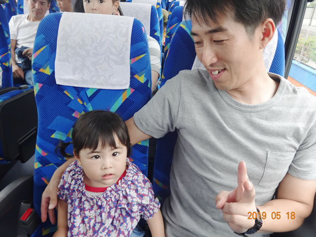 みんなで貸切バスに乗って、いよいよ出発~♪